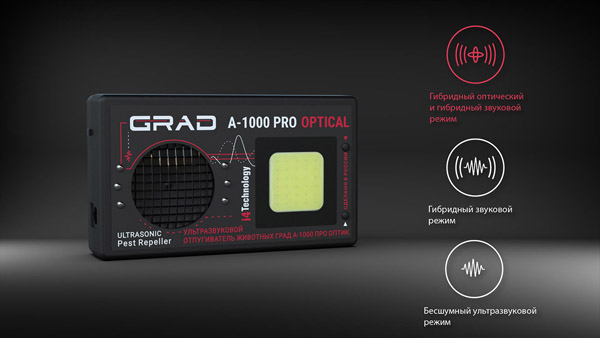 Преимущества отпугивателя грызунов "Град А-1000 ПРО ОПТИК":